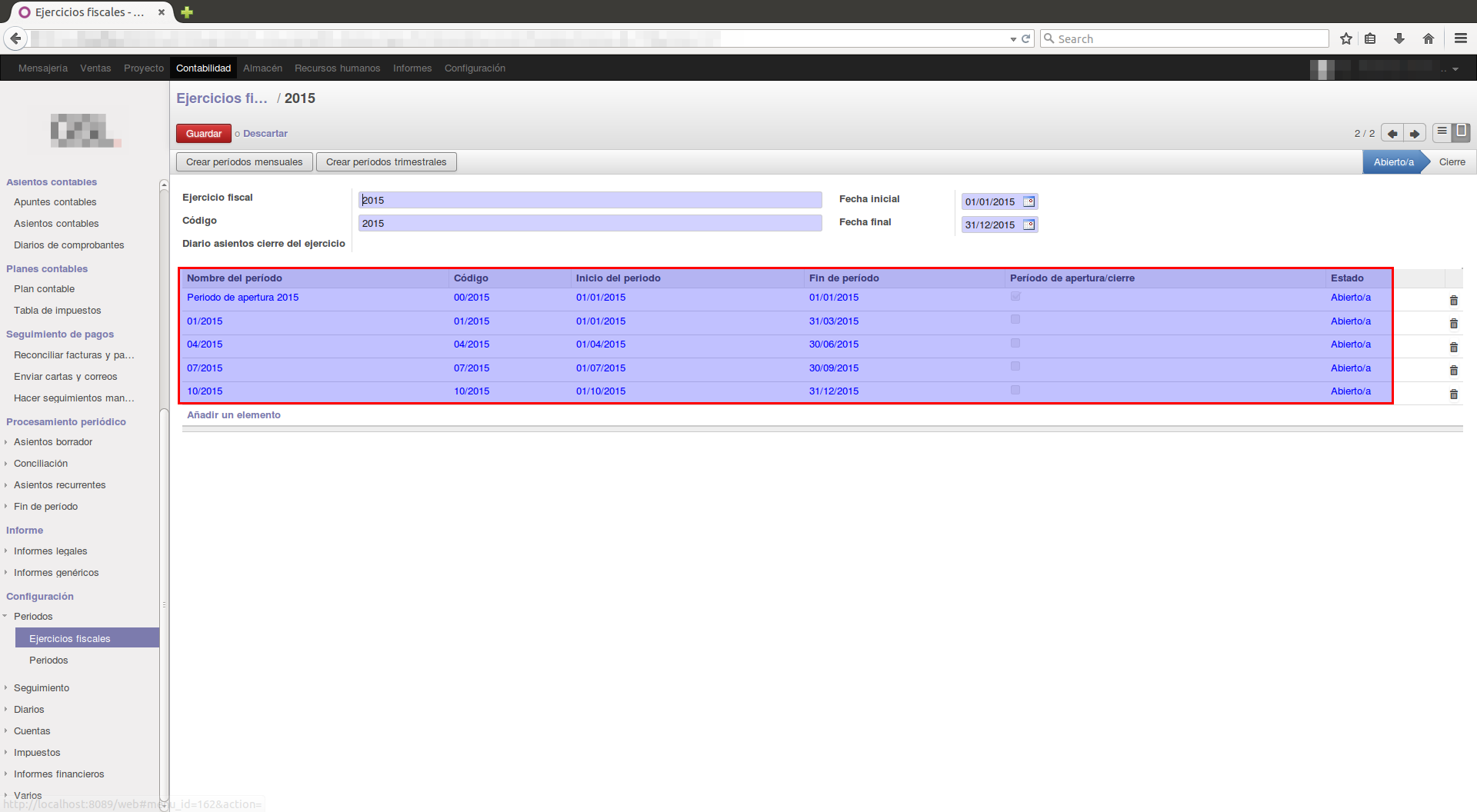 Cambio de Ejercicio Fiscal y creación de períodos en Odoo